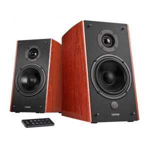 Boxe 2.0 cu carcasa din lemn pentru un sunet puternic si clar, amplificator integrat.