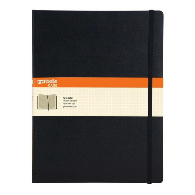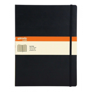 Caiet cu coperti carton imitatie piele, inchidere verticala cu banda elastica.