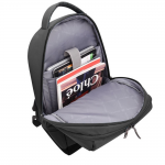 Compartiment principal cu buzunar captusit pentru laptop, buzunar interior din plasa cu fermoar.