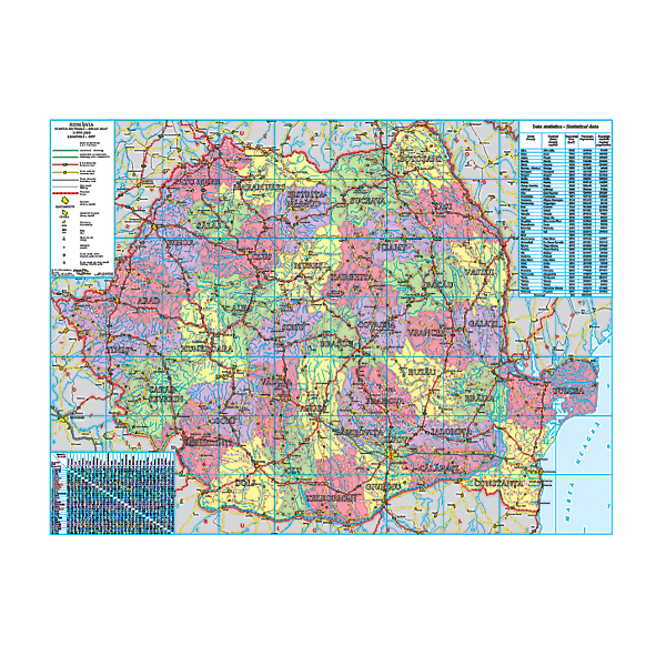 Harta Romania pe suport panou pluta, profil aluminiu, suport perete.