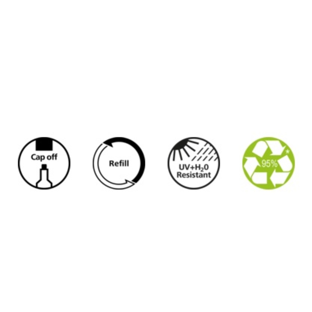 Corp din plastic, capac cu clema de prindere in culoarea scrierii.
