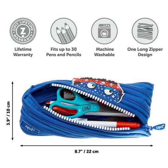 Prevazut cu o deschidere cu fermoar mare (20 cm, dinti albi) pentru acces facil la interior (poate stoca pana la 30 instrumente de scris).