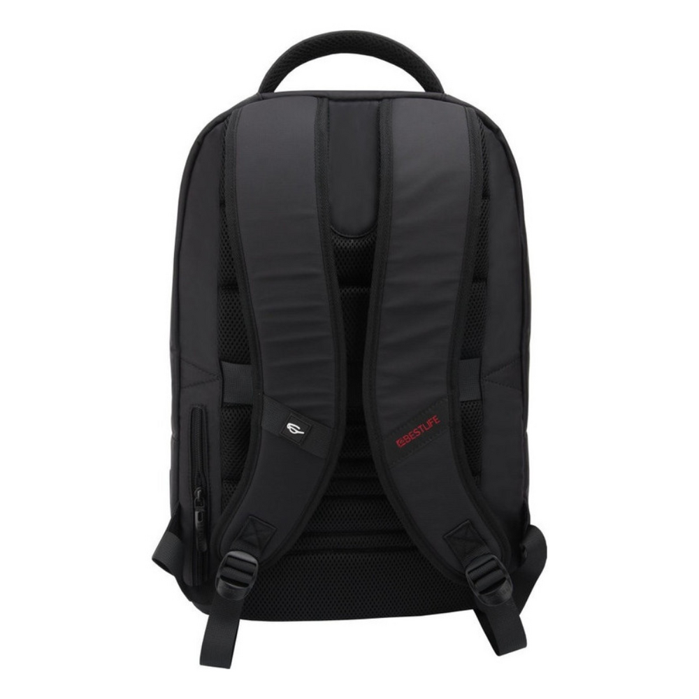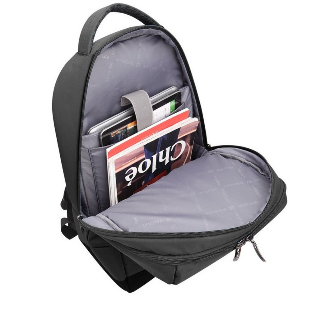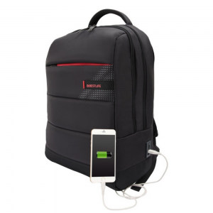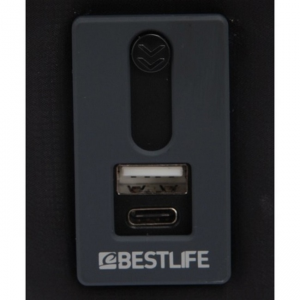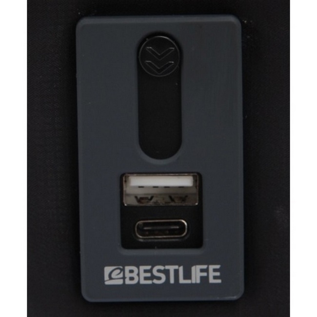 Buzunar frontal mare cu fermoar, spate captusit, porturi USB si Type-C pentru incarcarea dispozitivelor.
